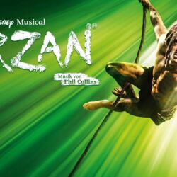 Das Musical begann mit einem lauten Knall und ließ den ein oder anderen in den Reihen erstmal zusammenzucken, bevor sich der kleine Tarzan an seiner Liane durch das Publikum schwang...
