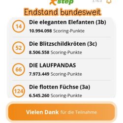 So konnten unsere Elefanten bei über 400 Schulen deutschlandweit sogar den 14. Platz erreichen. Bei einigen Challenges waren sie sogar in den Top10 ganz weit vorne unterwegs! Super!