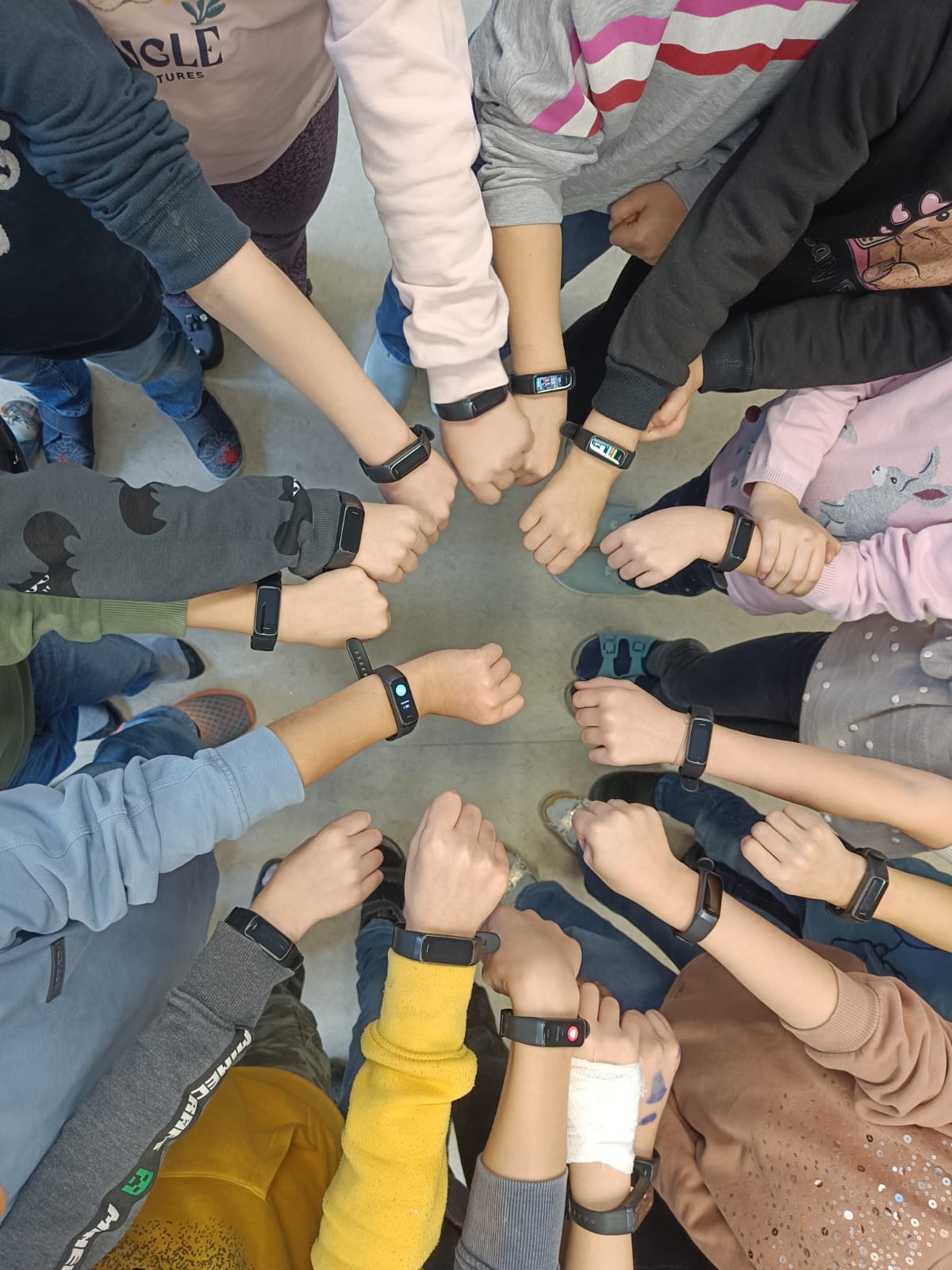 Zu Beginn bekam jedes teilnehmende Kind einen Schrittezähler in Form einer coolen Uhr. Jede Klasse sammelte Schritte für sich und der Wettbewerbseifer war geweckt…