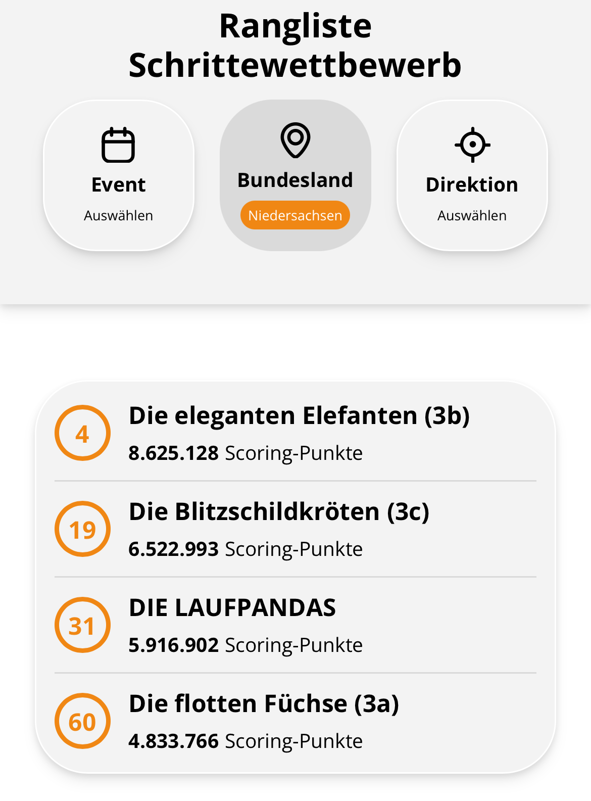 Besondere Namen wie die "flotten Füchse" , die "eleganten Elefanten", die "Blitzschildkröten" sowie die "Laufpandas" regten zusätzlich zum Schrittesammeln an und die Kinder gaben über Wochen alles.