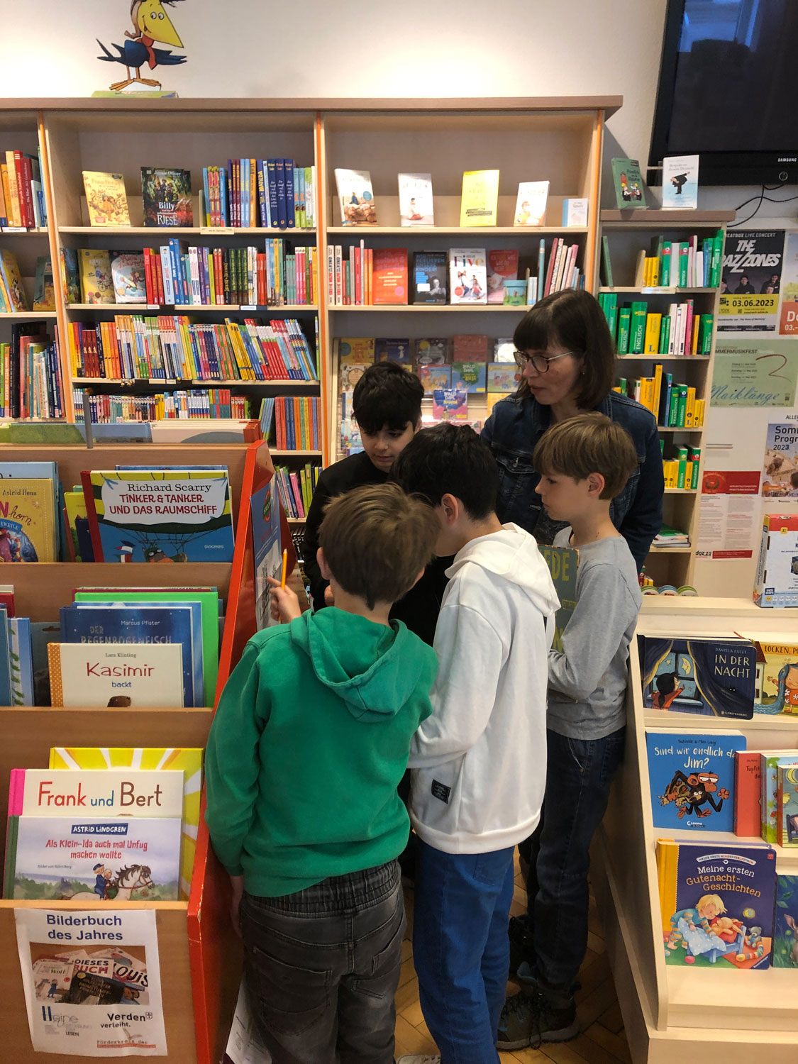 Einige unserer Viertklässler haben im Mai einen Besuch bei der Buchhandlung „Heine“ vereinbart, um ihr Buchexemplar persönlich abzuholen.